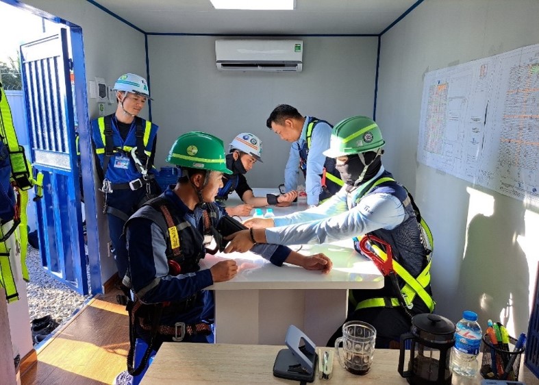Để đảm bảo an toàn, ngoài các cuộc họp buổi sáng trước khi bắt đầu công việc, TIC tiến hành kiểm tra sức khỏe nhân viên bằng cách kiểm tra sắc mặt và đo huyết áp. Nhân viên dù chỉ không khỏe một chút cũng sẽ không được phép làm việc.
